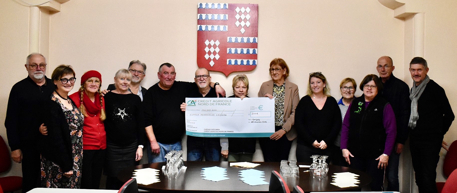 Jeudi 28 novembre, en présence de M. Le Maire, Rita Kfoury , René Lamour, Yannick Loriot, Anne-Marie Jacquin, Murielle Castelli et les présidents des Pas de Floris Vito Marchese et des Montagnardes Anne-Marie Nowak, Annick Bernard présidente d'Anim'Asso a remis le chèque de 300 euros à la représentante Espace Ressources Cancers Alison Savary.